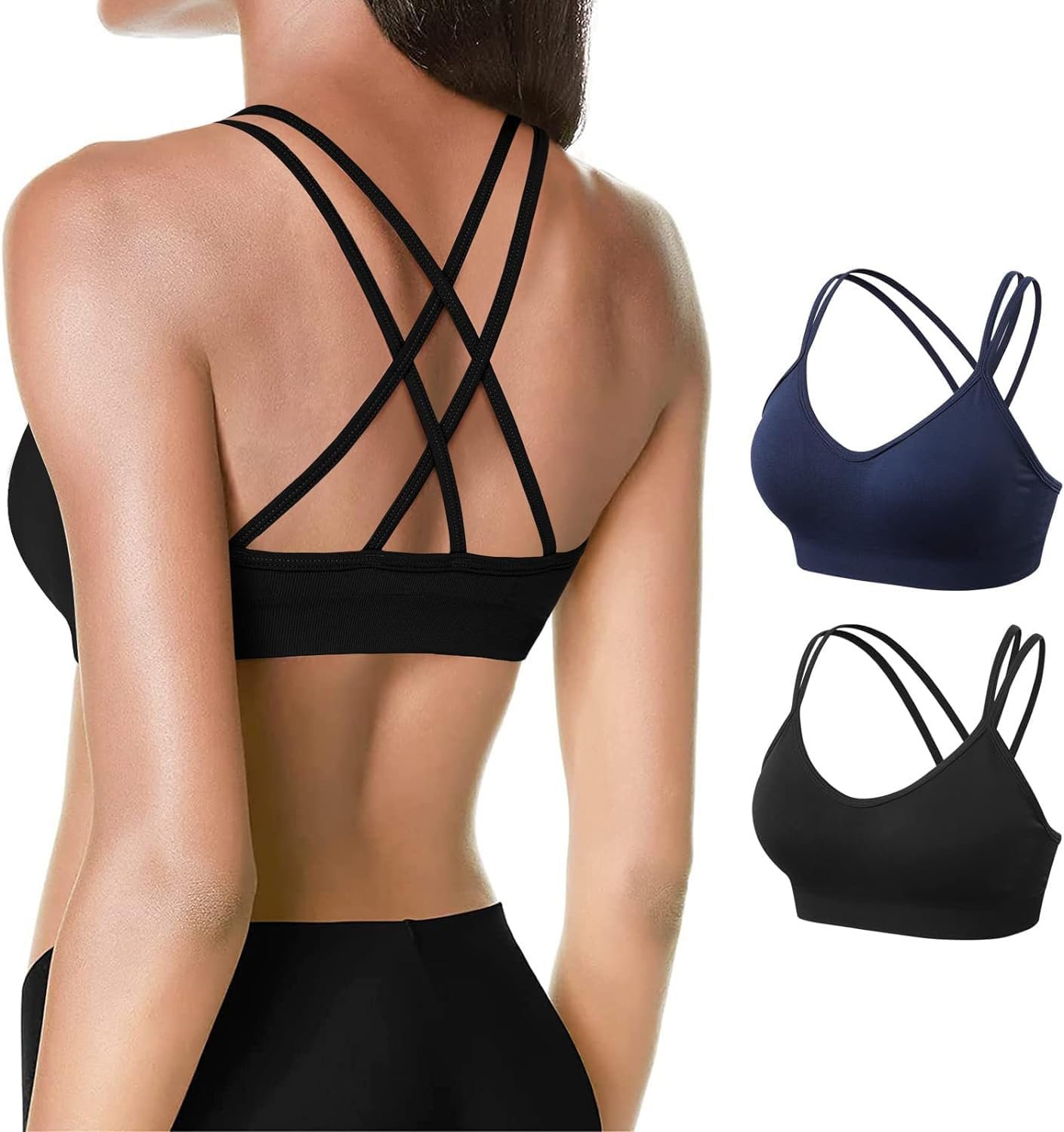 Women’s Cross Back Sports Bra Padded Strappy Medium Support Yoga Bra for Workout Fitness 3 Pack