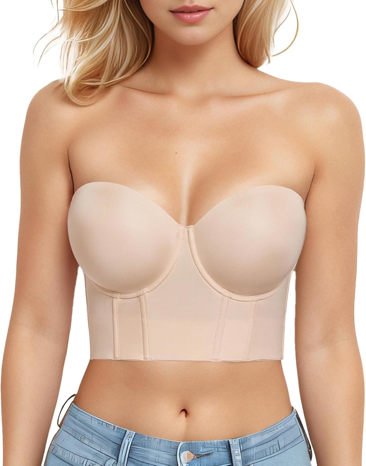 Women’s Longline Strapless Bra Bustier Full Coverage Anti Slip Underwire Corset Top