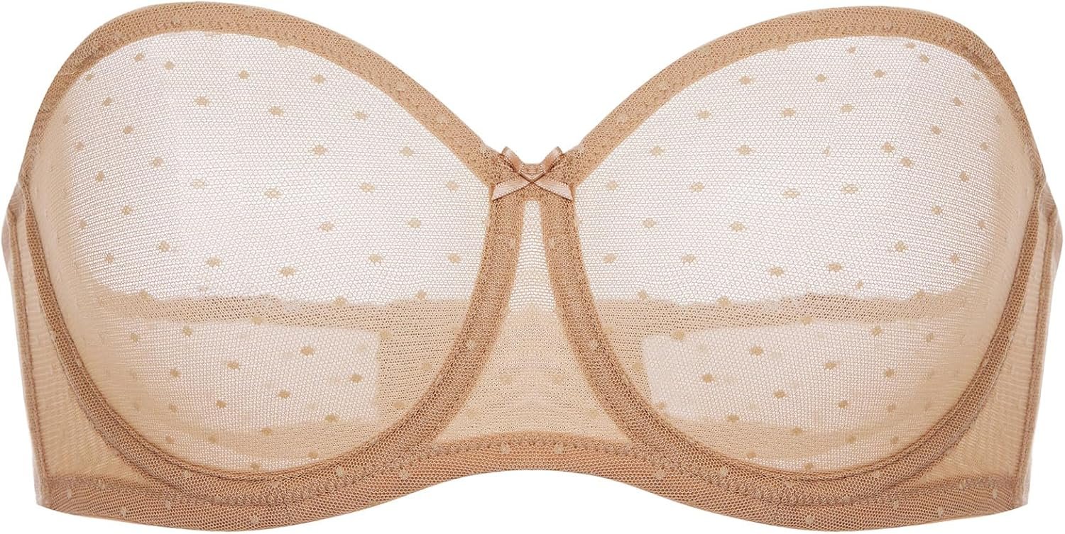 Women’s Mesh Strapless Bra Sheer Unlined See Through Underwire Bras Plus Size