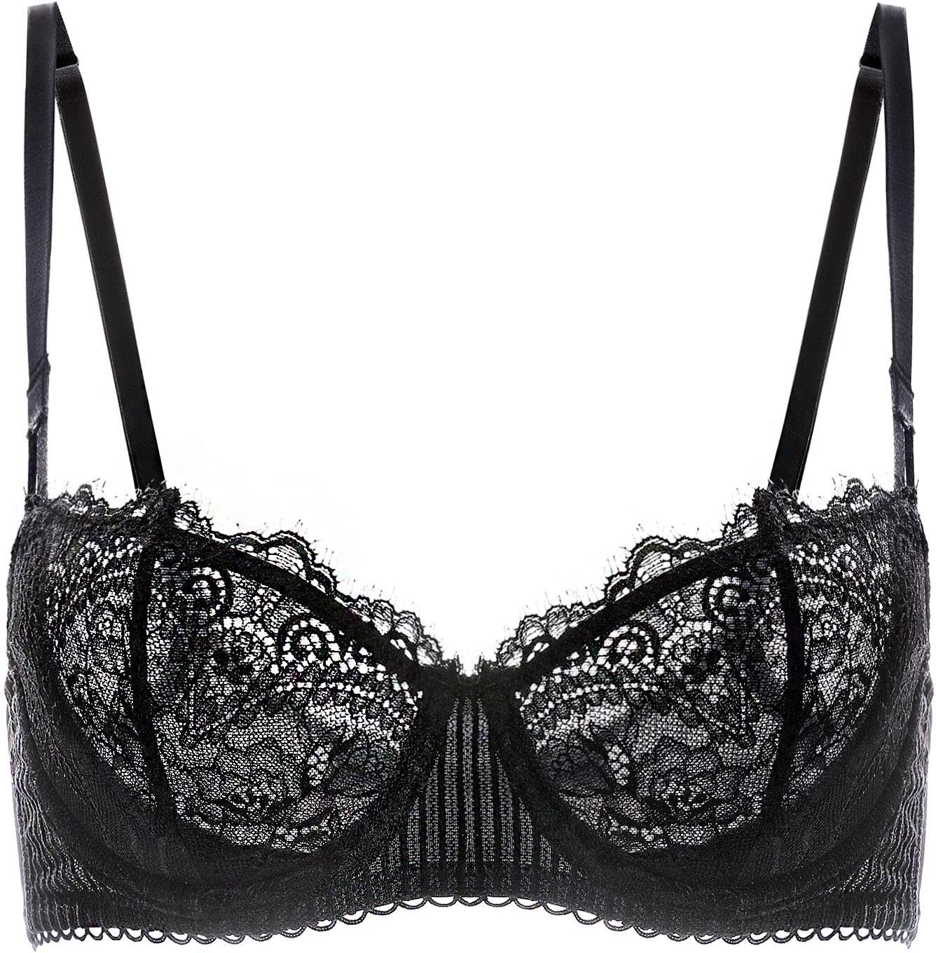 Women’s Sexy Lace Push Up Plus Size Bra Sheer Balconette Underwire Unlined